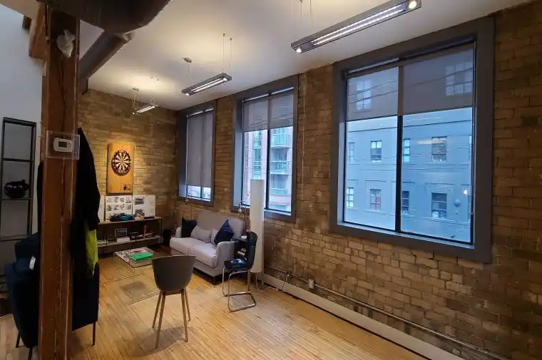 2nd floor walk up. Classic brick and beam with offices, meeting rooms, kitchen and open space.