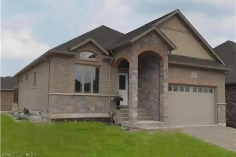 TO BE BUILT. Where can you buy a large bungalow for under 1 million these days???? In Charming Milverton that’s where… Its ready to move in! This 2600 sq ft + (TLS), beautifully crafted 2-bed, 2-bath bungalow build by Cedar Rose Homes offers the perfect blend of luxury and comfort. As you step inside, you’ll be greeted by the spacious, open-concept layout featuring soaring vaulted ceilings that create an airy, inviting atmosphere and a lovely large Foyer. The heart of the home is the gourmet kitchen, designed for those who love to entertain, complete with sleek stone surfaces, a custom kitchen and a large, oversized kitchen island, ideal for preparing meals and gathering with loved ones. The living area is perfect for cosy nights with a fireplace that adds warmth and charm to the space and surrounded by large windows making that wall space a show stopper. The large primary bedroom provides a peaceful retreat with ample space for relaxation and the luxury ensuite and walk-in closet offer an elevated living experience. From your spacious dining area step out thru your sliding doors onto the expansive covered composite deck, which spans nearly the entire back of the house. Covered for year-round enjoyment creating a serene outdoor oasis. The thoughtfully designed basement offers endless possibilities, featuring an open-concept space that can easily be transformed into 2-3 additional bedrooms, plus a massive Rec room, is already roughed in for a 3rd bath, a home office, or an in-law suite. With its separate walk up entrance to the garage, this space offers privacy and versatility for your familys needs not to mention fantastic development opportunity for multi family living. This exceptional home is crafted with top-tier materials and upgrades are standard, ensuring quality and longevity. Ready in 140 to 160 days! Measurements are approx and Photos are not exact.