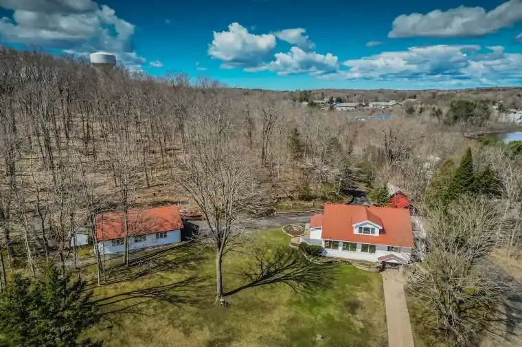 Welcome to the largest and most prestigious lot on Todholm Drive. This extraordinary home sits on what was three separate lots now deemed as one combining the home, garage and back lot for those wanting location, privacy and functionality all in one property. This Estate Sale combines over 4 acres of land with a 3000 sq foot home, detached oversized garage that is partially winterized and a rear forested area for added enjoyment. Just steps away from the public access to Lake Muskoka, the home features 5 bedrooms, three bathrooms, living room, recreation (games) room, kitchen, dining area, lower rec-room, tool room, office and indoor car parking. The new forced air propane furnace, central air conditioning, modern appliances and pool table are just a few of the many attributes. This original farmhouse has been added too and expanded on over the years combining a mixture of old, new, and renovated in one spectacular offering. Outside, surrounding the meticulously landscaped front of the property you will find paved and interlock driveways connecting the house, garage, barn and storage shed, with each structure well maintained and practical. The rear 2 acre portion of the property provides a number of connected trails for personal use or could be developed in accordance with R2 zoning. This unique Muskoka home and property is also on town water with its own back up well making this a uniquely functional package of land and private home, allowing for a personal residence, home based business or redevelopment opportunity. The possibilities are endless.