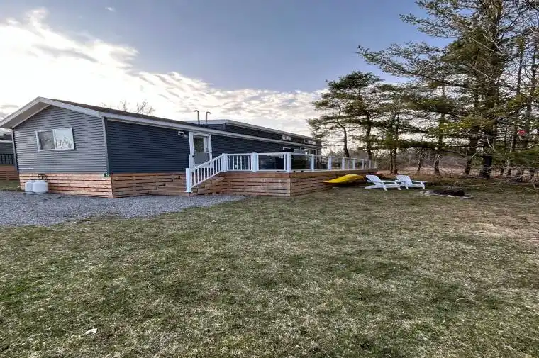 WOW! WOW! WOW! – SELLER WILL PAY YOUR 2025 SEASON PARK FEE AND YOUR RESERVED DOCK FEE FOR 2025 !! ALL YOU HAVE TO DO IS MOVE IN !! Start packing !!! This cottage sits on a very private well treed premium lot. It is a very modern, bright and inviting 3 bedroom cottage built by Woodland Park in 2021 sits on a very private wooded, premium lot. It includes many top-end features such as centre kitchen island with s/s appliances, entertainment centre in living room with electric fireplace, primary bedroom with queen size bed with built in cabinetry and 2 secondary bedrooms with extra long bunk beds, high ceilings, lots of windows and an abundance of storage so bring the family! The 300 sq ft deck made of pressure treated wood and an upgraded glass railing is perfect for outdoor entertaining and BBQ’S with family & friends. Bonus, Sellers will throw in the patio dining set and the new BBQ! Enjoy all the resort amenities including the inground pool, recreation centre, boat launch, hiking and ATV trails, on-site store, on-site laundry facilities, multi sports court for road hockey, pickle ball, tennis, basketball, play horse shoes & more. Don’t forget to go to the beach, go fishing, canoe, paddle board, kayak, watch live concerts, fireworks, Christmas in July & Halloween in the park. When you are not playing you can rest comfortably with a 45,000 BTU high efficiency furnace, central a/c, 20 GAL electric and gas water heater, 30 year shingles, premium vinyl siding, energy-star-rated thermo-pane vinyl windows. This is a 3 season park (open May to Oct), owned and operated by Summerhill Resorts. A stunning waterfront park with controlled gate access & is pet friendly. All mobile/cottages, No RVs. Land lease Fees include water, waste, guest passes, unlimited use of amenities, lawn maintenance, on site staff support. Enjoy all the perks and upmost privacy of a private cottage with the social benefits of a resort lifestyle without the cottage price tag!