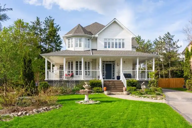 Extraordinary, postcard perfect curb appeal at this sophisticated and stunning 4-6 bedroom, 5 bathroom, 2 storey home, serving up exciting and sleek architectural details, with an invigorating layout, comfortable for just a couple, yet with a family friendly spirit. Over 5,100 sq. ft. of beautifully flowing living space. Exquisitely positioned, in-town, on full municipal services, within walking distance of amenities, yet exclusively nestled on a quiet and secluded true ‘cul-de-sac’. Melane Court is unquestionably one of Bracebridge’s finest addresses. Built in 2002 and originally owned by the builder, the home stands proudly with a beautiful wrap-around covered southwest facing porch, with a cleverly tucked away attached 4-car garage along the side with paved drive, ample parking, on a large 1/2 acre lot with fully fenced garden oasis back yard. Inside, a dramatic 2-storey foyer beckons with its curved staircase. The main floor features a solar southerly office/den, hardwood floors, formal living room, dining room, eat-in kitchen, and separate family room. Plus a handy mudroom, powder room, and MF laundry room. Upper level presents 3 sizeable bedrooms plus a loft, one with an ensuite privilege, one fully ensuited, plus the 1,100+ sq. ft. primary wing featuring a private den/T.V. room, walk-in closet, ensuite with soaker tub, sauna, studio, and walk-out to deck. Finished lower level is a flexible space with access from the garage, 3 pc. bath, ample storage, bedroom, gymnasium, and rec. room. Potential to create a nanny’s suite with the basement. 10 kW back-up generator, central air, forced air gas heat, multiple fireplaces. Newly resurfaced back deck and large patio area with custom greenhouse, and separate gazebo enliven outdoor living. An executive family home in a neighbourhood where very, very rarely is anything offered for sale. This is a truly exemplary offering exuding so much warmth and charm, with features and facets everyone desires.