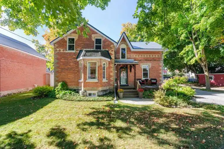 Welcome to this beautifully restored century country home, offering over 2000 sqft (MPAC) of thoughtfully updated living space-ideal for young families seeking timeless charm with modern conveniences. Step inside to find sun-filled, spacious rooms with classic hardwood floors, tall baseboards and a graceful staircase. The main floor features a cozy family room, elegant living and dining areas and a large, family-sized kitchen with a breakfast nook, stainless steel appliances, pot drawers, a lazy Susan and a built-in dishwasher. Enjoy the added functionality of a main-floor office, powder room, laundry room and a bright mudroom with access to the oversized garage. Upstairs, you’ll find generously sized bedrooms with large closets and an updated bathroom with a stunning claw-foot tub and separate glass shower-perfectly blending vintage elegance and modern style. Set on a picturesque 72 x 137.5 ft lot, this home offers serene living with perennial gardens, a spacious deck for entertaining and parking 5-6 cars. Major updates include a durable metal roof, cement driveway, newer furnace, garage door, back door, eaves, soffits, and many windows. Country charm, character, and comfort-this home truly has it all.