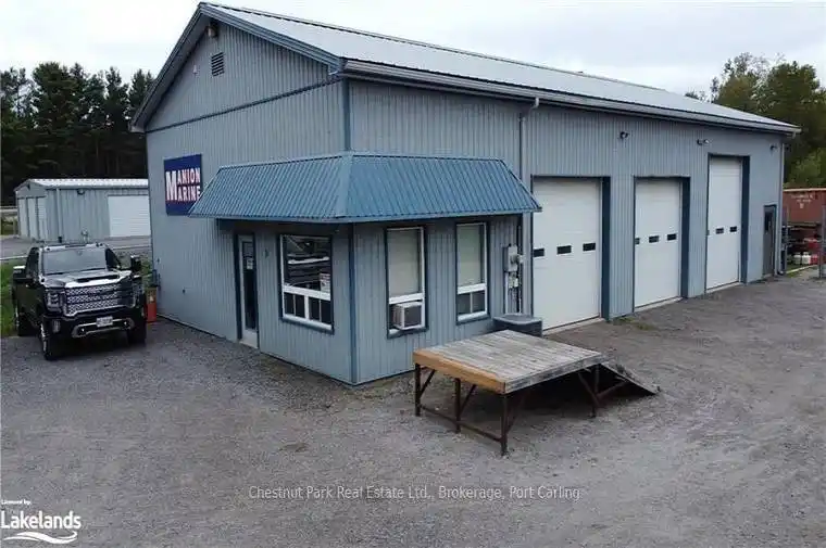 LAND, BUILDING, IMPROVEMENTS & PROFITABLE BUSINESS – Turn key, year-round exceptionally busy dry land marina with ready-made income with M1 zoning. Located in Bracebridge the heart of Muskoka, situated in an expanding commercial area with close proximity to Highway 11. Offering mechanical service to local commercial establishments, contractors & seasonal cottagers. Scheduled annuals on 160 commercial units, general maintenance and repairs, yearly storage, parts and so much more. This property offers a fully fenced compound, a 32’x64′ 3-bay shop operating on municipal services, and a great reputation worth a thousand words established in 1996. The building has been updated offering a bright workspace, air and water lines plumbed throughout, floor drains & main floor plus loft storage. The front office provides a great point of contact with lots of natural light and has exceptional visuals of day-to-day operations and foot traffic. If you’re looking for an investment that will continue to grow, this is for you. Note: Also offered separately – Business Only. Call today for further details. Documents Package available.