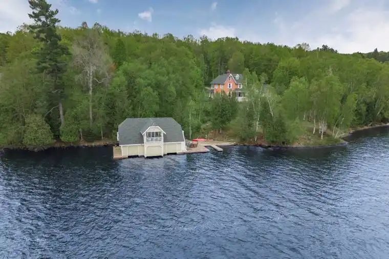 Once known as **Birch Hall**, this storied estate on Lake Cecebe is where Muskoka beauty and rich history converge. Set on 52 private acres with 660 feet of pristine shoreline, the property invites you down a winding, tree-lined lane into a bygone era. Originally built in the early 1900s, this cherished farmhouse retreat overlooks Echo Rock and offers a front-row seat to the lake’s timeless splendour. A classic wraparound verandah invites you to pause and take in the breeze off the water before stepping inside. Here, original hardwood floors stretch beneath your feet, and transom windows above doors whisper stories of generations past. The kitchen and living areas blend rustic warmth with thoughtful updates, including a wood-burning fireplace that anchors cozy gatherings. The main floor bathroom offers a luxurious steam shower, an unexpected modern indulgence in this historic setting. Upstairs, a sunroom lined with windows fills with soft light, perfect for quiet reading or an artist’s retreat. The upper bath features a deep jetted soaker tub for long, relaxing evenings. A walk-up attic remains untouched, rich with potential for a studio, loft, or preserved just as it is a rare piece of the home’s original soul. Down by the shoreline, a three-slip boathouse with upper-level living quarters redefines lakeside living, offering guests a private escape above the water. Two oversized, detached three-car garages provide exceptional storage for vehicles, watercraft, and recreational gear, with space left over for a workshop or creative pursuits. Modern comforts include electric baseboard and forced-air propane heating, a spring-fed well, UV water filtration, and a wired generator ensuring peace of mind in every season. Located just minutes from Burk’s Falls, the estate offers tranquil seclusion without sacrificing access to essentials. This lakeside estate is a living legacy on Lake Cecebe, lovingly preserved and waiting for its next chapter.