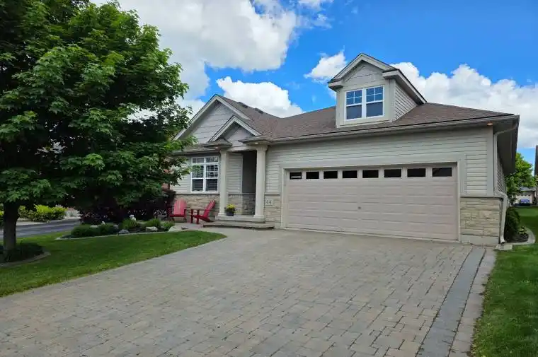 WELCOME HOME!!! Is all you are going to be saying when you visit 44 Morris Trail located in prestigious Residences at Hunters Pointe. Looking for one floor living but dont want to give up your square footage? Well, this spacious open-concept bungalow will check all your boxes. Offering 1,750 sq ft on the main floor and approximately 1,200 sq ft of finished living space on the lower level this home is ideal for large family gatherings or dinner parties with friends! From the welcoming foyer through to the walk-out from the dining area to the backyard interlock patio, this home is sure to please the most discerning buyer. Features include: Carpet-free throughout; Gleaming hardwood flooring in principal rooms on the main floor; Massive, private, main-floor primary bedroom suite with 5pc ensuite (double sinks, jetted tub, corner shower) and walk-through his and hers (walk-in) closet; Two additional 4pc baths; Additional main-floor bedroom and an extra bedroom on the lower level; Main-floor laundry room with closet and access to the 2 car garage; Granite counters in the lovely kitchen open to the entire main floor; Nine-foot main floor ceilings with a vaulted ceiling in the primary bedroom; Luxury laminate flooring in the lower-level family-room with a flex-space; New Shingles in 2021; New Furnace in 2016; New Central A/C in 2024. Don’t want the hassle of mowing the grass or clearing snow? A low monthly fee of $262 covers it all, PLUS gives you access to all that the Hunter’s Pointe Community Centre has to offer. Enjoy the saltwater indoor pool, hot tub, sauna, library, games room, fitness centre, tennis courts, and a large multi-purpose room all for use only by residents in the Community. Be sure to watch the video tour of the Community Centre linked in the listing to see all these amenities. This lovingly maintained home, the convenient location, and the amenities just cant be beat! Dont let this one pass you by!
