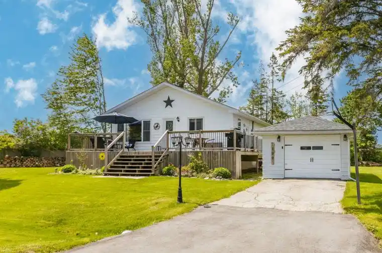 This pristine bungalow is overflowing with charm, and has access to Sturgeon Lake! The large front deck and sparkling clean white siding provide impressive curb appeal. The main floor has been completely updated and shows like a model home. The bright modernized kitchen has stainless steel appliances, a pantry, and a movable island that can be conveniently tucked away. Stepping into the living room, you cannot miss the extra large window with views of the lake. 2 bedrooms on the main floor, with a tastefully updated bathroom. The partially finished basement has two extra bedrooms, a rec room that can be finished to your liking, and a laundry nook. Detached garage, and a large pie lot with a 2nd driveway for extra parking. The spacious backyard has a garden shed and firepit. Multiple shared lakefront lots through the community association providing a variety of uses from picnic sites, open park spaces, fishing areas, boat launch, and docking for your boat (subject to availability). There is also a community center building that can be rented out. Plenty of updates (years are approximate): Roof 2023, AC 2023, Kitchen 2024, Bathroom 2019, Flooring 2022, 100 amp electrical panel 2010, Propane furnace 2010.