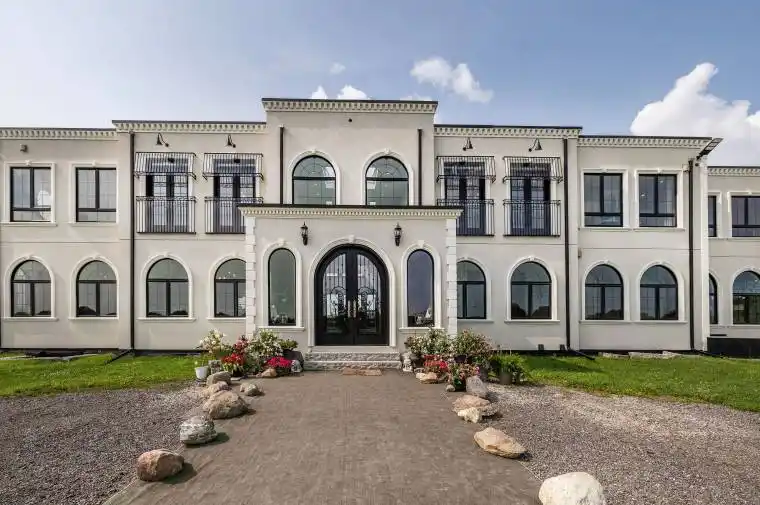This magnificent Neo-Classical Estate home blends the modern, conservative and progressive into a majestic home situated on 52 acres of natural beauty. 8500 sq.ft. of beautifully designed living space and 5725 sq.ft. of space just waiting for your creative touch. A homeowners dream and a developers lucrative investment opportunity. With spacious rooms, high ceilings, large windows and lovely views, this home provides the light, space, peace and scenic surrounding of a private sanctuary. The exquisite kitchen is built to please everyone. Modern, with quality craftmanship and high-end appliances, it transitions seamlessly into the adjoining living and dining spaces. Equally stunning are the bedrooms, each with beautifully appointed 4 piece ensuites, walk in closets and large windows. Especially amazing is the Primary, encompassing a separate dressing room which could easily serve as a nursery, An ensuite with a two person steam shower, 2 vanities and a gorgeous brass tub with a separate massive walk-in closet with a 2 piece bath.