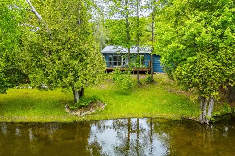 Escape to tranquility with this beautifully renovated 3-bedroom, 1-bathroom cottage on half an acre of prime waterfront property along the serene Gull River in Norland. Situated at the end of a quiet, private road, this property offers unparalleled privacy and a peaceful setting, perfect for year-round living or a seasonal getaway.The cottage boasts an open-concept layout with vaulted ceilings that enhance the airy and spacious feel. The bright and inviting living area opens directly to a large riverside deck, ideal for enjoying your morning coffee while taking in the stunning water views. With a freshly renovated interior, you’ll find newer electrical, insulation, siding, and a durable metal roof. The property features 100 feet of clean, deep water frontage, providing the perfect conditions for swimming, kayaking, or simply relaxing by the shore, with easy boat access into Moore Lake for water sports. The level lot is dotted with mature trees, creating a serene, park like atmosphere while maintaining a clear, natural view of the river. Additional highlights include a convenient laundry hookup in the bathroom, a crawl space for storage, and an attached workshop offering ample space for tools and gear. The cottage is fully insulated and ready for winterization, with just a heating source needed to make it cozy and year-round. With modern updates and an idyllic setting, this waterfront property on Gull River offers the best of both worlds; seclusion and comfort, just waiting for you to call it home. Don’t miss out on this rare opportunity to own a piece of paradise!