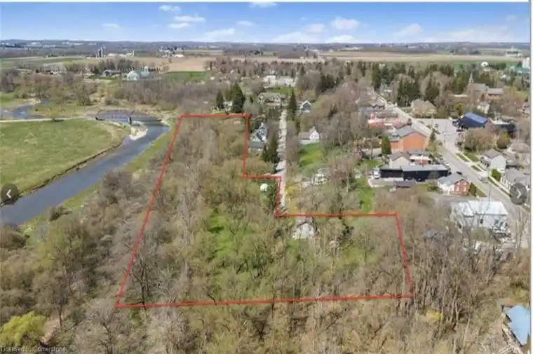 Welcome to 36 Elgin Street a rare and exceptional land opportunity in the heart of Conestogo, where the Grand River meets the Conestogo River. Set on nearly 4 acres of mature, tree-lined land, this unique property offers scenic beauty, privacy, and outstanding redevelopment potential. Whether you’re looking to restore the existing farmhouse or build your dream home, this site presents endless possibilities in one of Waterloo Region’s most picturesque settings.The existing 3-bedroom, 1-bathroom farmhouse spans over 1,800 sq. ft. and is rich with rustic charm featuring original woodwork, wide plank floors, vintage fireplaces, and expansive windows that fill the home with natural light. The main floor includes two inviting living areas and a spacious country-style kitchen with a walkout to the backyard. Upstairs are three character-filled bedrooms that can be renovated or reimagined as part of a larger vision.Zoned residential and surrounded by estate-style, multi-million-dollar homes, this property is ideally located close to trails, golf courses, St. Jacobs, Elmira, and the city of Waterloo. Whether you’re a builder, investor, or a family dreaming of a countryside retreat close to urban conveniences this is a rare opportunity not to be missed.roots in a peaceful, well-connected community.