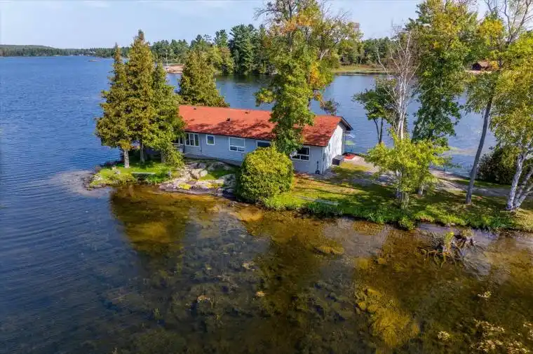 Welcome to an awe-inspiring 13-acre peninsula on Stoney Lake, featuring a private waterfront with nearly 3,000-foot shoreline. This remarkable estate includes two fully updated, year-round cottages, each with three large bedrooms and three modern bathrooms, making them perfect for family gatherings or rental opportunities. Delight in the ultimate outdoor experience with private docks, decks, and a beautiful sandy beach. Relax in the peaceful ambiance of the charming gazebo, an ideal spot for sipping morning coffee or admiring the sunset. Each cottage comes with a hot tub for added luxury. Behind this 13-acre retreat lies 2250 Gilchrist Bay Rd, a vast 157-acre property with a residence over 7,300 square feet, once the home of renowned Canadian musician Ronnie Hawkins.