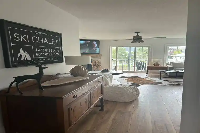 Welcome to your fully renovated mountain retreat! This beautifully updated three-bedroom, three-bathroom condo blends cozy chalet charm with modern comforts, creating the perfect getaway in the Blue Mountains. On the main level, you’ll find the primary bedroom, full bathroom along with a warm and inviting living area with gas fireplace and walk out to patio. The open-concept kitchen and dining space make it easy to gather with family and friends, whether you’re enjoying a quiet night in or entertaining. The upper-level rec room invites relaxation with a gas fireplace, shuffleboard, TV lounge, and a spacious terrace offering breath-taking mountain views ideal for gathering with family and friends after a day of adventure. The community offers fantastic amenities, including an outdoor swimming pool, tennis courts, and a recreation centre complete with a pool table, ping pong, and more. Outdoor enthusiasts will appreciate the nearby walking trails, off-leash dog park, and childrens playground. Located just a short stroll from the Village, you’ll enjoy easy access to shopping, dining, and entertainment. This Blue Mountain condo has everything you need to unwind and enjoy the best of four-season living. Available August, September, October, November