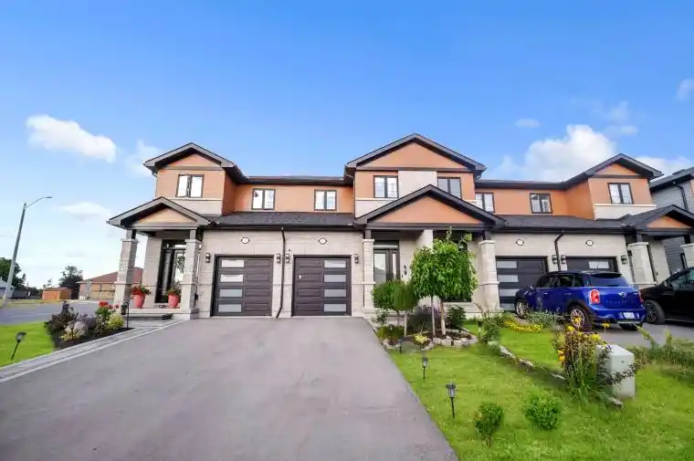 Welcome to Primrose Towns in the sought after Heritage Park Subdivision! This brand new 2- storey freehold townhome offers 1,597 sq ft of thoughtfully designed living space, featuring 3 spacious bedrooms, 2.5 bathrooms, and 9′ ceilings on the main floor. The open concept layout boasts a bright and modern L-shaped kitchen with ample cabinetry, a central island, and 4 included stainless steel appliances. Upstairs, enjoy the convenience of second-floor laundry and a generous primary suite complete with a large walk-in closet and a private ensuite featuring a ceramic tile shower with glass door. Additional highlights include a deck off the dining area with privacy screen, paved driveway, single car garage with inside entry, garage door opener, and a fully sodded lot. Finishes include ceramic tile in the foyer, bathrooms, and laundry. Ideally located close to shopping, the recreation centre, and quick access to Hwy 401 this is an exceptional opportunity to own a beautiful home in a growing community. Dont miss out!