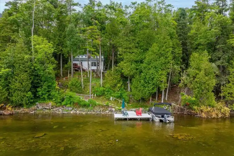 “2 ACRES…. 200FT OF WATERFRONT!!!!! ” First Time Offered in 25+ Years Waterfront Gem on 4 Mile Lake! Welcome to a rare opportunity to own a slice of untouched paradise on the highly sought-after 4 Mile Lake. Set on 2 acres with an impressive 200 feet of pristine waterfront, this charming two-bedroom, three-season traditional cottage takes you back in time and offers the perfect escape from the hustle and bustle of everyday life. If privacy and peacefulness are what you seek, look no further this property is all about solitude and serenity. Surrounded by nature, you’ll be captivated by the panoramic lake views and the gentle sounds of the water lapping the shore. Whether you choose to embrace the rustic charm of the existing cottage or envision your dream cottage from the ground up, the potential here is endless. From the moment you turn into the long private, tree-lined laneway, you’ll feel your shoulders relax and your breath deepen. This is where memories are made ,sunrise coffees on the dock, afternoon swims in crystal-clear waters, and evenings around the fire under star-filled skies.4 Mile Lake is one of the regions most tranquil and beloved lakes, known for its clean waters, natural beauty, and cottage community charm. Don’t miss your chance to make this legacy property yours.