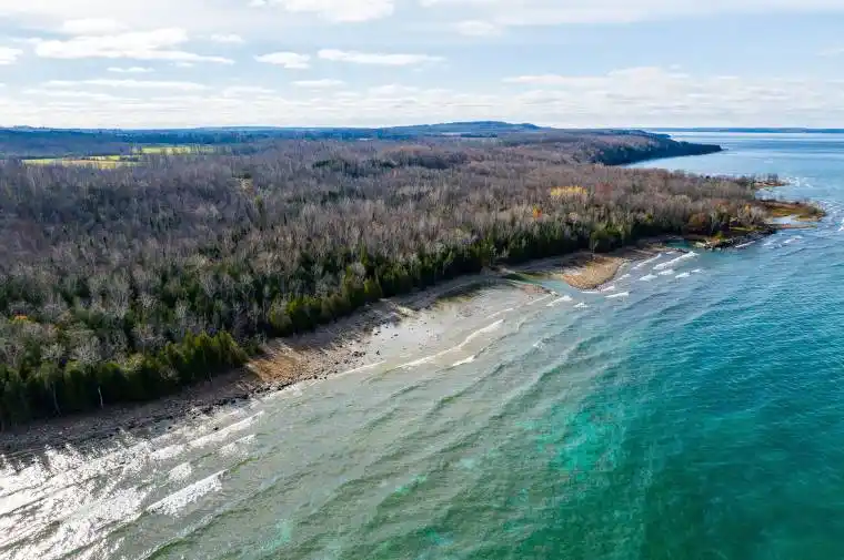 This unique offering of vacant land has approximately 800 feet of waterfront and 20 acres of land including approximately 6 acres zoned Shoreline Residential approved for the construction of your buildings and development. This listing is being sold beside 423001 Harbour Rd which is approximately 700 feet of waterfront and 14 acres of land including approximately 5 acres zoned Shoreline Residential area in which to develop with your cottage, home and other buildings. This is an unprecedented opportunity to purchase either one waterfront property, or both properties together totalling 1,500 feet of waterfront and 34 acres of land. There are 2 gravel access roads from the entry gates at Harbour Road down the hill to the level areas of land prior to the shore. There is also an interior gravel road that stretches the width of the property from the east border to the west border. The west property has a small harbour with a canal dredged to allow a medium sized boat to enter away from open water. There is also a second canal that has been dredged straight in to the shoreline. No services have been brought into the property but there is hydro and Bell Telephone available at the entry gates. These two properties are located between Owen Sound (25km) and Meaford (27km). Two vacant land listings along the waterfront this significant may never be available for purchase again.