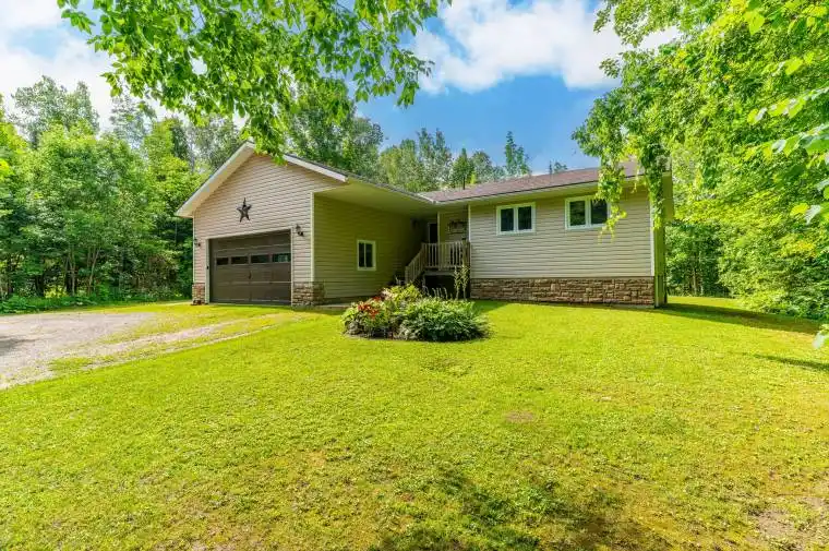 Luxury Meets Nature 275 Centre Diagonal Road, South Bruce Peninsula. Discover refined country living at this beautifully appointed 4-bedroom, 1.5-bath raised bungalow, privately tucked away at the end of a quiet road. Set on over 2 acres of serene, wooded landscape, this elegant home offers both seclusion and sophistication just minutes from Wiarton or a short, scenic drive to Owen Sound, plus only 10 minutes to the white sands of Sauble Beach. Thoughtfully designed for comfort and style, the home features a spacious layout bathed in natural light, with generous living areas and tasteful finishes throughout, plus a heated and insulated attached garage. Step out onto the expansive back deck, perfectly positioned to capture the morning sun an ideal space for outdoor dining, entertaining, or simply soaking in the peaceful surroundings. Mature trees frame the property, offering privacy and a picturesque setting year-round. Whether you’re seeking a luxurious full-time residence or a tranquil retreat from the city, this exceptional property promises space, comfort, and timeless charm in an unbeatable location.
