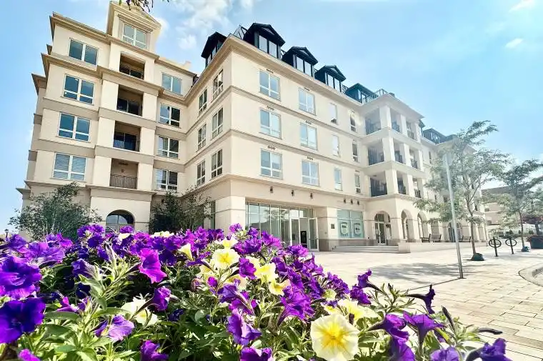 Welcome to The Courtyards at Cathedraltown – a charming boutique-style residence nestled in one of Markhams most architecturally distinctive and peaceful communities. This bright and spacious 2-bedroom, 2-bathroom suite offers exceptional value with its RARE side-by-side underground parking for TWO vehicles – a standout feature in condo living. Large west-facing sliding doors and two Juliette balconies – a rare find that not all units have – fill the home with natural light and fresh air. The interior features 9-ft smooth ceilings throughout, adding to the airy, modern feel. The open-concept layout seamlessly connects the living, dining, and kitchen areas – perfect for both everyday living and entertaining. The kitchen offers stainless steel appliances and ample cabinet space.The primary bedroom includes a 3-piece ensuite with an upgraded walk-in shower and a dedicated closet, while the second bedroom offers flexibility as a guest room, office, or nursery. Designed with comfort and functionality in mind, the unit also includes ensuite laundry and generous storage. Enjoy a host of well-maintained amenities including a fitness centre, party/meeting room, landscaped courtyard, concierge service, and visitor parking. Conveniently located close to shops, cafes, parks, and just minutes from Highways 404 and 407, groceries, transit, and more.