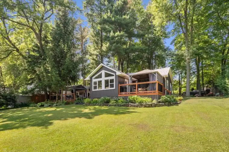Luxury on the lake! Introducing Lake Belwood, a hidden gem yet to be discovered & a short drive to Guelph, KW, Oakville, Hwy 401, Pearson Airport and Toronto. Have you always wanted the beauty and relaxation of cottage country but hated the drive and all that came with it every weekend? Here is your answer – stay close to home with this amazing cottage at Lake Belwood. Enter into the cottage and find a very generous living space flooded with natural light and large windows throughout that provide incredible views of the large yard and lake. The main space has all kinds of great details…incredible pine whitewashed shiplap throughout, incredible beams on the ceiling, beautiful backsplash in kitchen and handy woodstove. Two large bedrooms and a great 3 piece bathroom with heated floors complete the main cottage. Off the living room is a large deck with gazebo thats perfect for your morning coffee or evening cocktail. Need more space for family or guests? The handy bunkie provides a couple more bedrooms or use it however you like…lots of possibilities. Another large deck connecting to the bunkie, two large sheds, boat dock and tons of yard space complete the exterior of the property. Another added bonus, as if there isn’t enough already, is the convenience to the town of Belwood. A couple minute walk to the cute town, complete with a great little restaurant, public boat launch and the Belwood Country Market- did someone say buttertarts? If you know you know! Do not miss your chance at this incredible cottage – a must see in person. This is a seasonal cottage on GRCA lease land, full time living is permitted April 15 – November 15 and 10 days of living permitted in the off season.