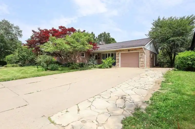 New Kitchen, Large Bedrooms, Basement Walkout, Upper Deck, Insulated Shop, Incredible Lot, Parkland and Golf Course View!!! Not a drive-by and private viewings only on this well built appealing home perched on higher elevation and overlooking serene greenery. This three plus one bedroom, three bathroom bungalow has an incredible private, peaceful and sprawling rear yard with fire pit area and heart shaped pond including a stand alone 18 x 28 ‘L’ shaped functional workshop with 100 amp service and an additional 17 x 18 shed with loft providing plenty of extra space for hobbies and storage. The main floor offers a newly renovated kitchen with island and dining area leading to the lovely deck with gazebo overlooking your personal oasis in the city from up high. The living room with built in fireplace is open to the dining room and kitchen and has new attractive wood flooring. Three spacious bedrooms with good sized closets and one with ensuite, another bathroom and main floor laundry/mudroom/pantry with entry to garage are on this level. Downstairs the large rec room opens up directly to the backyard and also another bedroom, office/den, bathroom and cold cellar. The attached garage and concrete driveway offer parking for more than 5 cars and room for a large vehicle or trailer. This home is located in a mature neighbourhood close to shopping, restaurants and highway 7/8 access to K-W and Toronto and has a lot to offer. Private showings only – book through your REALTOR to view.