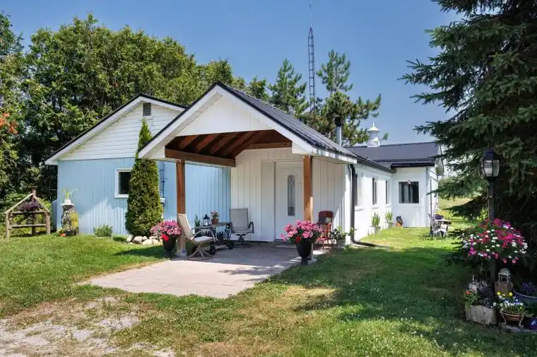 Updated bungalow on a tranquil 52 acre parcel of sprawling land on the edge of up and coming town of Beaverton, located minutes from the town with all amenities and from Lake Simcoe. Peaceful and very private living surrounded by nature, lush forested area with trails perfect for nature lovers or natural shelter for livestock. About half – 25 to 30 acres – is a pasture or a workable land for a hobby farm. Three bedroom, open concept bungalow had been updated in 2017-18, incl. floors, most windows and doors, kitchen with quartz countertops, roofs, foyer, propane stove and zero clearance fireplace – main heat source, electrical (200 amps), drilled well, landscaping and much more. Electric baseboards throughout the house serve as a backup or additional heat source. South facing living room, with a walk-out, and sunroom have a beautiful and unobstructed view of the property. Detached 60 ft x 20 ft 4 car garage/workshop with 9 ft ceiling is fully insulated, drywalled, with propane unit heater, 200 amps service, and 4 el. garage doors openers with battery backups. Two garage doors are 12 ft x 8 ft, and two doors are 8 ft x 7 ft to accommodate larger vehicles. For the garden lover there is a solid 16’x19′ garden/storage shed. BBQ is connected to the main propane line for convenience, and the property also boasts a natural pond. The property is a truly rare blend of privacy and comfort. Not to be missed!