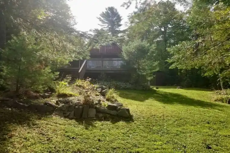 BOAT ACCESS ONLY – Located on the coveted Severn River of the Trent Severn Waterway, this 1.2 acre waterfront property offers incredible potential for those looking to renovate or rebuild. Featuring 141ft of direct waterfront on a quiet bay just off of Lost Channel, this original A-Frame style cottage offers three bedrooms, one bathroom, electric baseboard heating, a septic system & all the peace & quiet you’ve been longing for with Crown Land behind. Nestled among mature trees in a serene natural setting this property is ideal for nature lovers & boaters – with just two locks to the waters of Georgian Bay, enjoy direct access to miles of boating, fishing & exploring along one of Ontario’s most scenic & connected waterways. With some TLC & new piers for the foundation, this cottage can be transformed into your dream getaway – bring your vision & make it yours! Located a short 8 min boat ride from Big Chute Marina. NO ACCESS to the interior of the cottage – the structure has shifted roughly 6ft forward off the piers. Structure is unsafe to enter. Property being sold AS IS, WHERE IS. Dockage fees for the remainder of 2025 have been paid at Big Chute Marina.