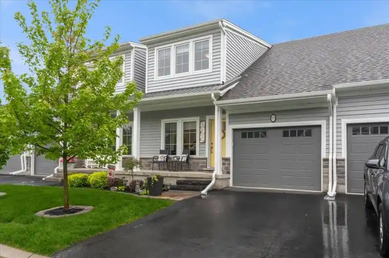 This five-year-old exceptional bungaloft features a main floor room ideally suited as a den, two bedrooms on the upper level, and a fully finished basement offering in-law potential, complete with its own bathroom and walk-in closet, in addition to ample storage space. The property includes a total of four bathrooms, stylish luxury vinyl flooring throughout, an open kitchen equipped with granite countertops, a walk-in pantry, and a vaulted ceiling in the living room. The backyard is designed for relaxation and sun exposure on the deck, while comprehensive landscaping, grass maintenance, and snow removal are provided, allowing for effortless enjoyment of the property. Furthermore, three bedrooms are equipped with walk-in closets, ensuring convenience with a bathroom accessible for each occupant. Additional features include a 200 amp panel, a garage door opener, and nine-foot ceilings on the main floor. The location is highly convenient, situated close to trails, shops, restaurants, and merely a short drive from Lake Erie. The Tarion warranty retains some remaining coverage, and the property was constructed by Southport Builders of Niagara. The condominium regulations permit one pet per unit, with inquiries recommended for any unique pet considerations.