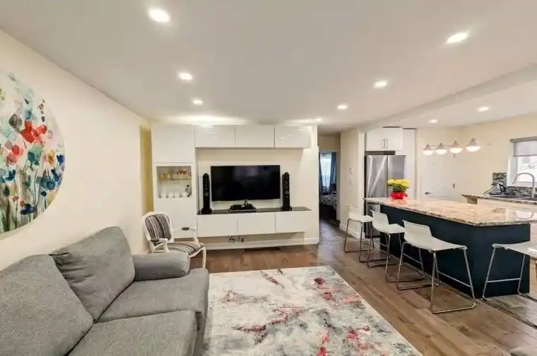A renovated 2-bedroom suite on the main floor of a bungalow house, situated in the heart of the highly coveted Willowdale neighbourhood. The suite (house) is located right at the intersection of Senlac Rd and Park Home Ave, a 10 min walk to the North York Centre subway station, and within minutes from local restaurants, cafes, shops, banks, grocery stores, and other amenities. The suite offers 2 cozy bedrooms, 1 fully renovated / modern bathroom, a beautiful kitchen with an open dining area, and a relaxing living room space. The kitchen is fully equipped with all the essentials (stove, oven, refrigerator, microwave, coffee machines, and a toaster). The bedrooms have comfortable beds, and the living room comes with a 43 inch TV, a sofa, and chairs. The area has some of the best ranked schools in the province that are accessible by walking or via a school system transit. Tenants will have access to very large and spacious backyard and a patio which can be used to entertain guests. The basement is NOT included and is currently occupied. Utilities extra. A laundry closet (washer/dryer) is built in. Shared parking is included, with 1 space allocated to the tenants, and may require coordination with the basement unit tenants.
