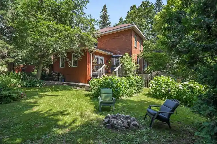 A Hidden Gem in the Heart of Bracebridge. Discover timeless charm and modern comfort in this beautifully updated c.1910 century home, tucked away on a peaceful, little-known street in the heart of Bracebridge. A rare offering, this property combines the serenity of a park-like setting with walkable access to the towns best amenities enjoy historic riverside trails, local art galleries, vibrant cafes, restaurants, and the Bracebridge Falls just steps from your door. Set on a lush and private lot, the home is surrounded by 40-year-old perennial gardens that bloom from spring through fall, with a canopy of mature trees including cedar, white pine, willow, and maple. A fenced 8′ x 12′ vegetable garden and extensive greenery create a truly tranquil backyard oasis. Inside, the home offers 3 spacious bedrooms, 2.5 renovated bathrooms, and a layout that feels both bright and welcoming. Original character shines through with 9-foot ceilings, large updated windows, and refinished hardwood flooring. The main floor offers both a living room and family room, perfect for everyday living or entertaining. The updated kitchen features a 30 GE 5-burner gas stove, Whirlpool fridge with bottom freezer, and Whirlpool dishwasher. Upstairs, enjoy a thoughtfully redesigned primary suite with ensuite bath, a generous second bathroom, and the convenience of upper-level laundry. The semi-finished basement adds flexible space for storage, play, or creative work. BONUS: A 20’x24′ detached garage/studio with in-floor heating and 60-amp electrical is currently used as a pottery studio, offering a perfect space for artists, hobbyists, or future home office needs. This is more than a home its a lifestyle. A true gem in one of Bracebridges most sought-after neighbourhoods, surrounded by natural beauty and creative energy.