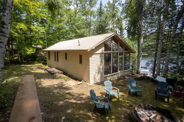 This cozy, water-access-only cottage is the quintessential escape from the everyday. Tucked into a large, natural lot on the serene shores of Black Lake, this charming retreat offers 100 feet of owned shoreline and incredible privacy, backing onto 92 acres owned by the Black Lake Conservation Group Ltd. A true nature lovers paradise!The main cottage features 2 bedrooms plus a spacious loft, a 3-piece bath, and a cozy living room with a wood-burning fireplace (not WETT-certified). Freshly painted on the exterior, the structure is in great shape and ready for your summer adventures. A generous screened-in deck offers the perfect spot to unwind, dine, or simply enjoy the peaceful waterfront views. This classic cottage experience includes a separate bunkie to comfortably accommodate additional guests perfect for creating lasting family memories or hosting friends. The property is equipped with a septic system and is just a short boat ride from the main dock. Located minutes from the vibrant town of Minden, you’ll have easy access to charming shops, local restaurants, farmers markets, and scenic hiking trails, all while enjoying the peaceful seclusion of your private lakefront retreat. Whether you’re seeking a special getaway, a nature-filled hideaway, or dreaming of a family compound, this Black Lake gem delivers.