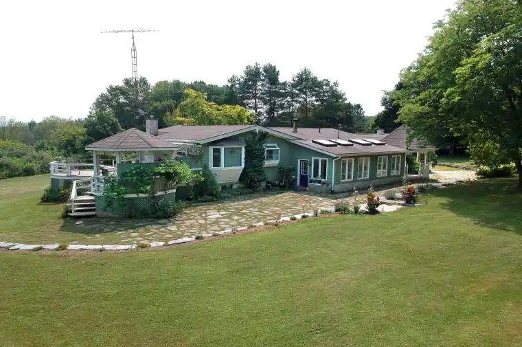 Scenic 2-Acre Retreat Overlooking Georgian Bay. Walk to the Beach. Discover the perfect balance of privacy, natural beauty, and location with this charming Viceroy raised bungalow set on a stunning park-like 2-acre corner lot, just a short walk from Kiowana Beach. Surrounded by mature trees and open green space, the property offers a rare sense of peace and plenty of room to make your own. Step onto the large entertaining deck with gazebo and take in the serene setting beautifully landscaped grounds with lush gardens, a tranquil UV-filtered pond, and space to roam. Inside, the home features 3+1 bedrooms, 2 bathrooms, and solid oak flooring throughout the main level. Enjoy a cozy gas fireplace upstairs, and a WETT-certified wood stove on the lower level for added comfort and charm. The sunroom, with new Velux skylights, provides a bright, peaceful space to relax or grow year-round. Additional features include central air, an upgraded UV water system, and an ideal location just minutes from the shops, restaurants, hospital, schools, and marina of Meaford; a vibrant, four-season town with skiing, hiking, boating, and endless outdoor activities. Outdoor enthusiasts will appreciate the oversized double garage with 200-amp service, two versatile storage sheds, and abundant space for gardening, hobbies, and recreation. Whether you’re looking for a full-time residence, a weekend retreat, or an investment in Georgian Bay living, this property offers a rare combination of natural beauty, space, and walkable shoreline access.