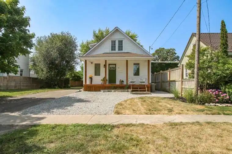 Stunning updated 1 1/2 storey home! This bright, 3 bedroom home has been renovated with quality from top to bottom including roof,siding,windows,doors,adorable front porch,beautiful hardwood floors, maple kitchen, granite countertops, two renovated bathrooms, finished recroom,main floor laundry, spray foam insulation, new high efficiency furnace and central air in 2024, pex water lines, new deck with fenced in adorable private backyard, armour stones around deck, new 8×8 shed. Walking distance to new Empire Sportsplex/Waterway. This home is a must see for someone looking to move in and enjoy!!