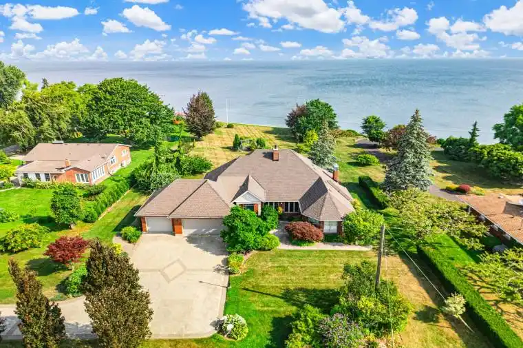 RARE OPPORTUNITY: LAKEFRONT LUXURY MEETS VINEYARD EXCELLENCE. Nestled along 120 feet of Lake Ontario shoreline, this extraordinary estate allows for both sophisticated living and vineyard cultivation. Set on a coveted 10.9 acres, this magnificent property offers an unparalleled lifestyle opportunity. Embrace the vintner’s lifestyle with 8.5 acres of meticulously maintained vineyard featuring four distinguished grape varieties: Shiraz, Kerner, Sauvignon Blanc, and Gewürztraminer. Whether you’re an enthusiast seeking to produce your own collection or a connoisseur desiring the ultimate wine country lifestyle, this vineyard offers both prestige and potential. The property’s shoreline has been professionally reinforced and protected, ensuring lasting enjoyment of your waterfront investment. Crafted in 1995 by the esteemed builder this 2,543 square foot residence features four bedrooms, 2.5 bathrooms, triple car garage and municipal water. The main-floor primary suite offers views of Lake Ontario, a walk-in closet and an updated 4-piece ensuite. Additional structures include a detached garage/workshop with concrete flooring and hydro service, and a solid 48′ x 24′ barn. Home features a propane fueled automatic backup power generator. This exceptional estate represents a once-in-a-lifetime opportunity to acquire a premium lakefront property with productive vineyard acreage – a combination rarely found. Here, luxury living meets agricultural heritage in perfect harmony, offering not just a home, but a distinguished lifestyle and potential legacy. Please Note: some photos have been virtually staged. Luxury Certified.