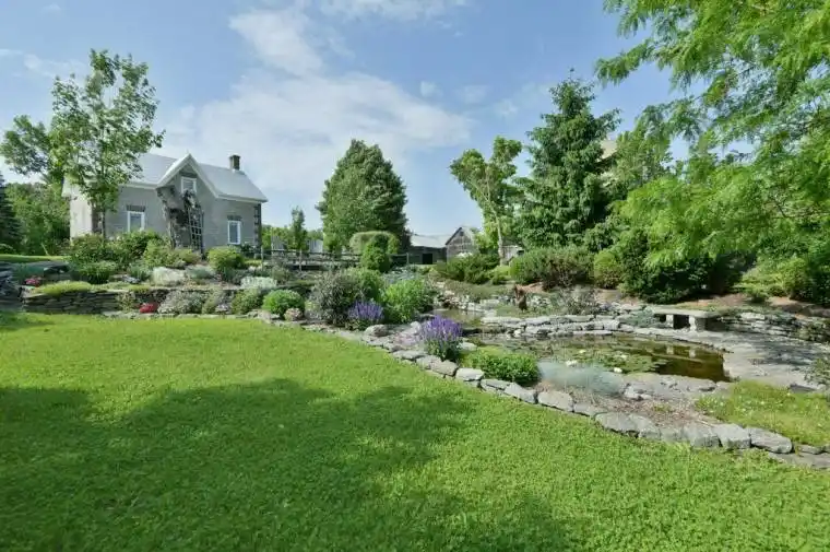 Step into a timeless masterpiece where history and luxury intertwine! This breathtaking solid stone home, crafted with unparalleled artistry in 1877, has been lovingly restored to preserve its old-world charm while seamlessly blending modern sophistication. Nestled at the heart of 138 pristine acres, this enchanted estate captivates with mature trees, vibrant perennial gardens, a cascading waterfall, and a serene pond that create a private paradise of tranquility and natural beauty. Inside, every detail exudes elegance. Expansive country kitchen, adorned with custom solid cherrywood cabinetry and gleaming granite countertops, invites culinary creations and warm gatherings. Grand family room, bathed in natural light through abundant windows, features cozy gas fireplace and rich hardwood floors, perfect for creating cherished memories. Original wide-plank pine flooring, meticulously refinished, flows throughout, complemented by restored trim, doors, sconces, and intricate ceiling medallions that whisper stories of a bygone era. Main floor boasts a gracious foyer, a center hall plan, convenient laundry room, and sophisticated office wrapped in cherrywood cabinetry. Upstairs, the sprawling primary bedroom is a sanctuary of indulgence, complete with luxury ensuite and generous walk-in closet. Modern upgrades enhance comfort without compromising the homes historic soul. Beyond the residence, the estate shines with 100 acres of fertile farmland, 38 acres of majestic forest, and fenced pasture meadows, ideal for agricultural dreams or equestrian pursuits. Thoughtfully improved barns and outbuildings add versatility and charm to this historic homestead. Set in the serene Ashton countryside, with paved access to HWY 7 and minutes from Ashtons quaint amenities, this rare gem offers seclusion and convenience. Don’t miss this extraordinary opportunity to own a piece of history, reimagined for modern living-a legacy estate where every moment feels like stepping into a storybook.