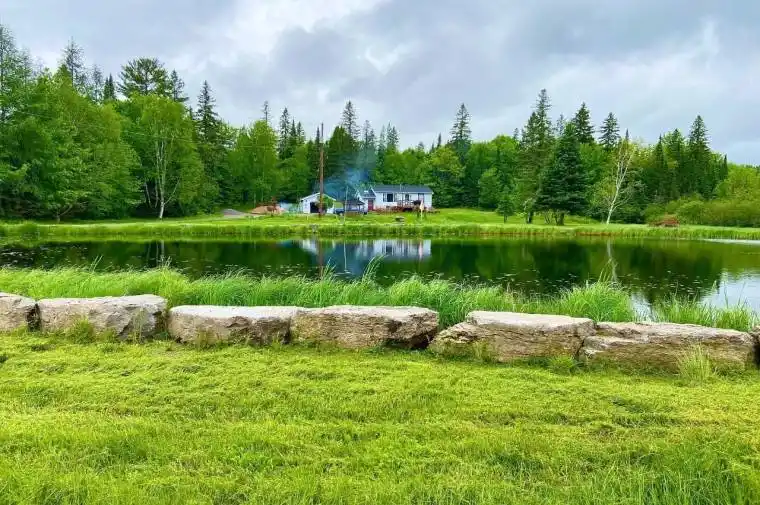 Escape to your private 111-acre nature retreat just minutes from Kinmount! This scenic property features mature trees cultivated over many years – perfect for developing trails, private retreats, or campground opportunities. The cozy bungalow offers two bedrooms, a kitchen, and a bright living room with expansive windows overlooking a picturesque 1-acre pond. The finished basement includes a spacious new 3-piece bathroom, dining area, game room, and laundry room. Enjoy a newly built 1,000 sq. ft. deck, two wooden gazebos, and a beautifully maintained grassy landscape surrounding the pond. Perfect setting for outdoor entertaining and relaxation. Recent renovations include a new kitchen, washroom, fresh paint, and all updated appliances. The property also boasts a completely rebuilt 100m driveway, a detached oversized 2-car garage, and a large implement shed.
