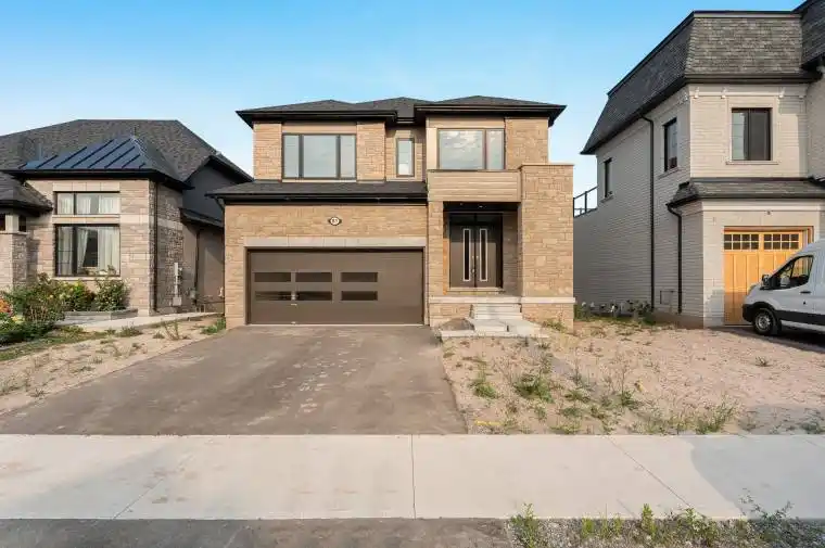 Elegant detached home steps from the Welland Canal: This beautifully upgraded 3-bedroom, 2.5-bath residence boasts a double car garage and a sleek, carpet-free interior. Featuring elegant 12 x 24 tile and 5″ engineered hardwood flooring throughout, complemented by a stunning stained oak staircase with black metal pickets. The modern kitchen shines with quartz countertops, valance and pot lighting, plus stainless steel appliances including a chimney-style hood fan. The spacious primary suite offers double sinks and a frameless glass shower for a spa-like feel. Additional premium touches include 200 amp electrical services and a 9′ finished basement. Enjoy nearby parks, trails, and waterfront living in this move-in ready geman absolute must-see!