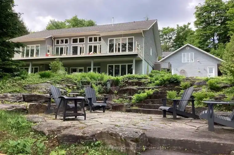 Charming 4 Season Lakeside Retreat on Kennisis Lake with a large detached 2 car garage & loft. With approximately 4600 sq ft of space & tasteful decor, this home boasts many high-end features, water views and hours of boating. The main floor presents a gorgeous, bright year-round Haliburton Room & walkout to the deck. An enormous open concept offers maple flooring, Living Room with propane fireplace, cathedral ceiling & walkout to a spacious waterfront deck. This open concept area includes a large dining area & kitchen showcasing granite counters, peninsula island, bar counter/wet bar & built-in double oven – perfect for entertaining or family gatherings. Continuing on this main level is the Primary bdrm with walk-in closet, 3 pc ensuite & walkout to the deck and a second bedroom with double closets & walkout. A large mudroom/laundry room & 4 pc bath complete this main level. The lower level includes a huge Family Room with propane fireplace, walkout & patio; 3rd bdrm with walk-in closet; 3 pc bath; office/den/storage room; workshop; utility room and under-stair storage. The spacious upper lakeside deck is perfect for dining alfresco or just relaxing with views & privacy. The detached heated/insulated 2 car garage with its own septic includes a charming 4 season bedroom loft with kitchenette & 3 pc bath (perfect for extra guests); central vac; and electric doors. A short walk brings you to the waterfront/sand beach to enjoy with family & friends or head out for hours of boating/watersports on this popular 2 lake chain with a marina that has become a destination for many lake residents for functions (tent rental available), store, food truck & pickleball courts. Enjoy leisurely walks on this quiet dead-end road. Popular Haliburton Forest is nearby. Improvements: newer h/w heater, propane furnace, heat pump & Generac generator. Security system wired only. Don’t miss the opportunity to own a piece of paradise on one of Haliburton’s most prestigious lakes.