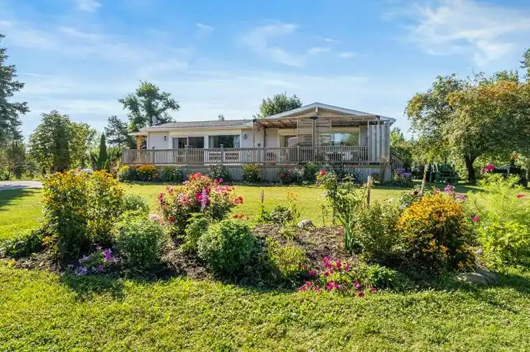 Set on a 2-acre corner lot, this inviting 3-bedroom, 1-bath home offers both space and charm. Surrounded by trees with distant escarpment views, its a property where children can play freely, gardens can thrive, and lasting memories are made. The oak kitchen with built-in appliances flows seamlessly into the dining and living areas, each opening onto a deck for outdoor enjoyment. A versatile lower level provides flexibility for a guest room, family space, or additional storage. Just minutes from Meafords shops, schools, and trails, this home combines the peace of country living with everyday convenience. For added peace of mind, a pre-listing home inspection (August 2025) has been completed and is available to qualified buyers upon request.Thoughtful Updates:Recent improvements ensure comfort and value for years to come. In 2024, a new Lennox furnace, heat pump, and water heater were installed. The exterior offers multiple outdoor spaces, with a brand new side deck (2020), resurfaced back deck (2020), and a rebuilt front deck (2020). A new roof (2020) and updated laminate flooring (2020) further enhance the homes appeal, while the refreshed 4-piece bathroom (2021) adds a modern touch.