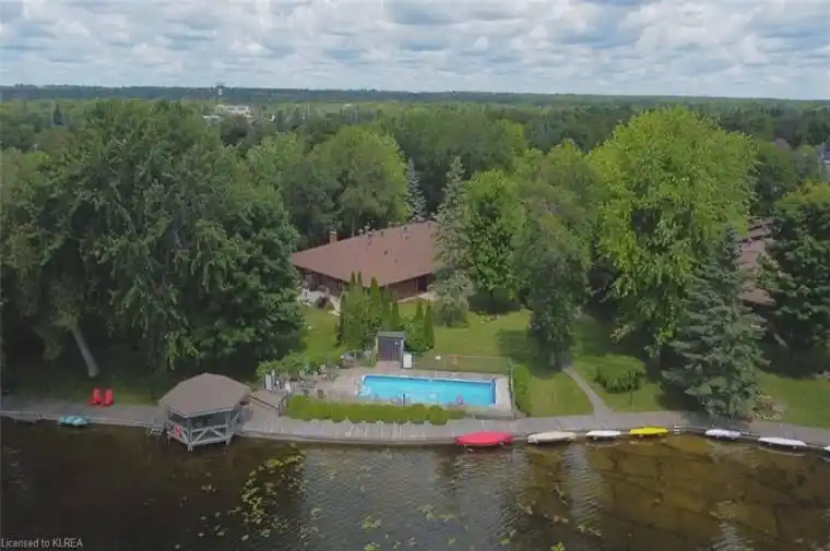 EDGEWATER CONDOMINIUS-Waterfront Condo in Bobcaygeon steps to Downtown shops and amenities on 11 acres with a private Club House, inground swimming pool and docking on the Trent Severn. Move in ready 2 BED/1BATH bungalow features an updated kitchen, fresh paint throughout and easy care laminate flooring. An open concept living/diningroom is filled with natural light ( new windows) and boasts a commanding view of the back patio and gardens. Updated 3 pc. bath is adjacent to the Primary Bedroom featuring a view of the rear patio and gardens and wall to wall closets. The second bedroom/den off the livingroom provides additional guest space and the livingroom walks out to your private patio. 90 mins. to the GTA, 30 minutes to big box shopping and steps to Downtown Bobcaygeon for all amenities.