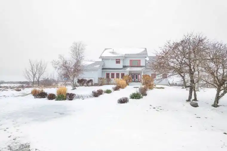 On Upper Rideau Lake, private peninsula with 19 acres, 3,860 feet waterfront and visits from herons, ospreys, ducks and geese. The big and beautiful walkout bungalow is exquisite. Lush colorful perennials follow the walkway to front porch where wide eye-catching double doors are most welcoming. Grand foyer has soaring 24′ ceiling, elegant chandelier and convenient coat closet. The 4+1 bedroom and 7 bathroom home offers endless space, including four bedrooms with their own spa-like ensuites. Living-dining room wood-burning fireplace accented with a slate hearth. Full wall of windows provide you with phenomenal views. Gourmet kitchen clear sightlines and tasteful style with shaker cabinets, long 9′ island-breakfast bar, 5-burner stove plus huge casement windows framing scenic outdoors. Three-season sunroom features cascading Weatherall windows, patio doors to screened porch and another set of patio doors to huge deck. Main floor powder room and three bedrooms, each with ensuites. One of the bedrooms opens to screened porch. Entire second floor palatial primary suite with vaulted ceiling, propane fireplace and wall of windows overlooking lake. Primary suite also has balcony, walk-in closet, 5-pc ensuite double-sink vanity, glass shower & soaker tub. Walkout lower level, built above ground with large windows, so it’s full of light. Lower level familyroom, bedroom, 3-pc bath, laundry centre and door to attached equipment-storage garage. Home has new 2022 metal roof & exterior hi-end CanExel siding. Generac generator. Walking trails meander thru the peninsula and go by numerous varieties of apple trees. One side of the peninsula has 2023 dock with clear waterfront for swimming. Other side natural setting attracting song birds and chirping frogs. Located on paved township maintained road, with mail delivery and garbage pickup. Hi-speed and cell service. Just a walk to Westport or 25 min drive to Perth.