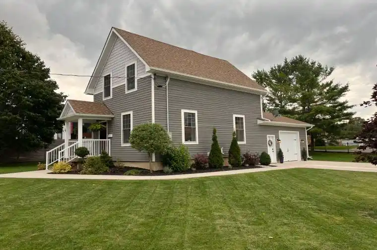 I wanted to share some exciting details about a beautifully renovated home located at 39 John Street. Every detail has been meticulously updated. The house features all-new windows and doors, complete reinsulated, and new drywall and trims throughout. One of the highlights is the kitchen, which offers access to a new 12′ x 20′ deck on the side of the house. This deck provides seamless access to both the side and rear yards, as well as a dedicated play center for children. The home boasts a fantastic location, situated close to downtown and just one block from the community center and splash pad, making it ideal for families. It sits on a large corner lot that has been thoughtfully landscaped with attractive flower beds, concrete walkways, and a double-wide driveway.