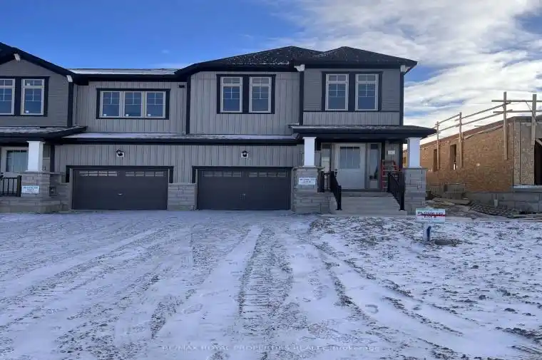 Nature Edge Neighbourhood!!! Corner Townhome Built by Pristine Homes! This elegant residence offers 3 bedrooms with 3 washrooms. The interior features upgraded kitchen cabinets, a quartz countertop, a breakfast bar, and brand-new stainless steel appliances. With a 9 foot ceiling, The primary bedroom includes a walk-in closet and luxurious 5 pc ensuite. Other highlights include a second floor laundry, a spacious open living & dining room. Upgraded flooring, Spacious house and enjoy the scenic view. This property is situated in the safe and peaceful west end of Peterborough, a new neighbourhood just 10 minutes from Trent University and offers excellent access to major highways (Hwy 7, Hwy 115 & 407 toll) along with being situated just 4 mins away from schools. Driveway is done and Sod has been laid.