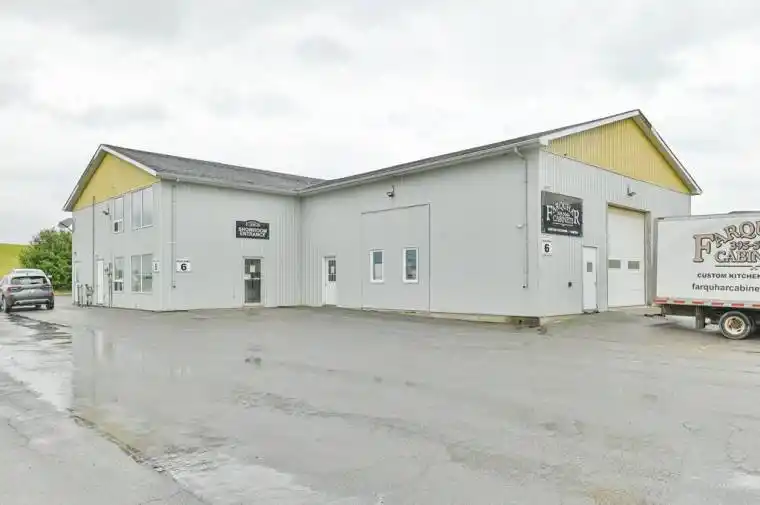 Located in The Villages of Stirling, just 20 minutes from the 401! This large industrial building comes complete with a one-bedroom apartment above-perfect for anyone who wants to live where they work or use the apartment as an income-producing rental. The main level features a bright showroom, massive workshop, paint room, lunchroom, office, and bathroom, all with 16-foot ceilings and a 12 x 12 overhead door. The building is equipped with Phase 1 Hydro, municipal services, a natural gas furnace, and a heat pump. The former business was most recently used for cabinet making, making this an ideal setup for trades, woodworking, light manufacturing, contractors, or a wide range of business opportunities. The flexible floor plan allows for storage, production, or showroom space to suit your unique needs. Upstairs, the apartment offers comfortable living with its own heat pump, in-unit laundry with appliances included, and separate Hydro metering from the main building. Spacious and practical, its ideal for an owner-occupier or as a rental to generate extra income. Backing directly onto the Heritage Trail, this property is ideally located for both work and lifestyle, offering endless possibilities. Upon closing, both the apartment and the industrial space will be vacant-ready for your business or your tenants. This is a fantastic opportunity-calling all business owners!