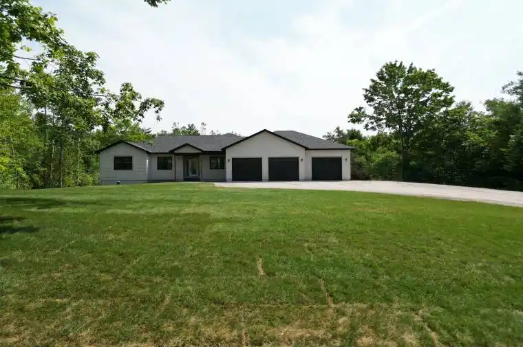 Welcome To This Stunning, 2024 Built Bungalow Nestled On A Private 1-Acre Lot, Just 5 Minutes From Bobcaygeon And Just Over 1.5 Hours From The GTA. This Custom Home Blends Modern Comfort With Timeless Natural Finishes. Step Inside To Find A Bright, Open-Concept Layout With Light Earth Tones, Custom Wood Doors, Trim & Built-In Storage Throughout. The Heart Of The Home Is The Chef-Inspired Kitchen Featuring Quartz Countertops, Gold Accents, And Ample Storage, Perfect For Everyday Living And Entertaining. The Living And Dining Area Is Flooded With Natural Light From Large Windows That Frame Peaceful Views Of Your Private Backyard. Step Out Onto The Deck For Seamless Indoor-Outdoor Living. The Luxurious Primary Suite Includes A Spa-Like 4-Piece Ensuite With A Freestanding Tub, Double Vanity, Custom Tile Shower, And A Walk-In Closet With Built-In Wood Shelving. Two Additional Main-Floor Bedrooms Share A 3-Piece Bath With A Custom-Tiled Shower, Plus There’s A Dedicated Office Or Flex Space Just Off The Living Area Ideal For Remote Work Or Hobbies. This Home Features A Triple Car Garage, ICF Foundation, Commercial-Grade Hot Water Heater, Forced Air Propane Heating & Central Air For Year-Round Comfort. The Partially Finished Basement Offers Incredible Potential, With Large Windows, Drywall, Insulation, And A Rough-In For A Future Bathroom. Final Grading& Rear Deck Stairs To Be Completed Prior To Closing. Move In And Enjoy Everything This Exceptional Home Has To Offer!