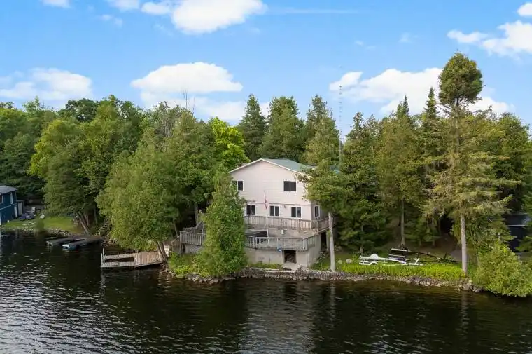 YEAR ROUND LIVING ON SOUGHT AFTER WHITE LAKE. This waterfront home offers a two-tiered deck, and boat dock. Separate workshop with its own panel box . The home offers two levels of generous living space. Open concept great room ( living/ dining)on main level, 2 sets of patio doors offering access to laneway & decking, kitchen, laundry and a full bathroom complete main level. Three generous sized bedrooms a 3 piece bath, and a storage room are offered on the second level. Seller will not respond to offers before 09/22/2025.Allow 72 hours irrevocable . OPEN HOUSE SUNDAY DECEMBER 7TH , 2-3 PM