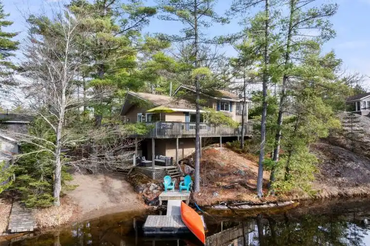 Exceptionally priced offering unbeatable four-season value with double-waterfront ownership.This fully furnished 3-bedroom, 1-bath retreat delivers year-round enjoyment with thoughtful upgrades, inviting indoor-outdoor living, and incredible water views from every angle. A charming 1.5-storey bunkie with its own deck adds the perfect space for guests or rental potential.Enjoy the rare advantage of two separate waterfronts, each with its own dock offering both sunrise and sunset exposure. A sandy beach for swimming and paddling, multiple decks for entertaining, and a firepit perched on Canadian Shield rock create the ideal setting for every season.Whether youre looking for a family getaway or an income-producing investment, this property offers the best price-per-value on the lake. Only 10 minutes from the Kawartha winery, with everything ready to move in and enjoy this one wont last long.