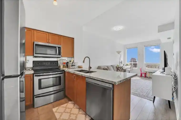 Rarely available, this bright 1+Den south-facing unit is nestled in the vibrant heart of Mississauga. Boasting 9-foot ceilings, 2 full bathrooms, captivating skyline views, and full daytime sun, Unit #2811 is bound to leave a lasting impression. With 715 square feet of living space within the architectural gem of “One Park Tower”, this residence offers modern comfort in the heart of one of Mississauga’s most dynamic neighbourhoods. Conveniently located mere steps away from the city’s finest restaurants, parks, public transportation, businesses, schools, and more!