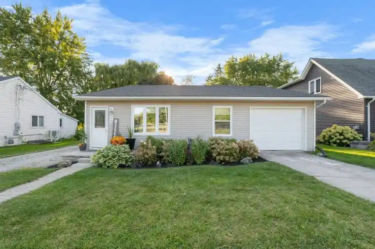 Welcome to this inviting bungalow on Marlborough Street in Exeter, Ontario where we have a home that offers more space than meets the eye. With two driveways and a one-car attached garage, parking is never an issue. Inside, the front of the home features a formal dining room and a versatile bedroom. The main floor also includes a spacious four-piece bathroom and convenient laundry area, with direct access to the primary bedroom complete with double closets. A thoughtfully designed rear addition expands the living space, offering a bright, open living room with sightlines into the kitchen. The kitchen is both functional and stylish, highlighted by a dedicated coffee bar. The lower level provides even more living space with a large recreation room, cozy electric fireplace, third bedroom, and an additional three-piece bathroom. Sliding patio doors open to a back deck that overlooks a deep, private yard ideal for outdoor relaxation. Major updates include a new roof and central air (2021), offering peace of mind for years to come. This Exeter bungalow is move-in ready and waiting for its next owner.
