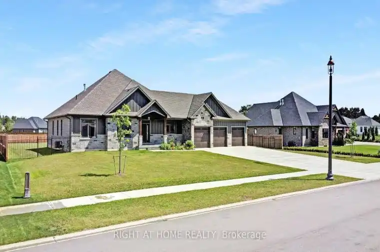 18 August Crescent is a modern bungalow constructed by Wagler Homes, offering a blend of comfort and style. This residence features an open-concept design with vaulted ceilings, enhancing the spacious feel of the home. The kitchen is equipped with hard surface countertops and custom cabinetry, providing both functionality and elegance. The primary bedroom includes a large ensuite with a soaker tub and a walk-in closet, ensuring a private retreat. Additional highlights include a triple-car garage, poured concrete sidewalks and a driveway . The basement is partially finished, with exterior walls framed, insulated, and drywalled, and two bedrooms along with a bathroom framed, offering potential for further customization. Situated on a generous lot, this property combines modern amenities with a tranquil setting. Excellent property in exclusive neighborhood.