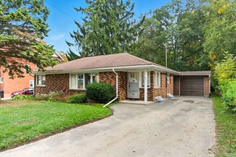 Charming Brick Bungalow in the Heart of Midland. This solid all-brick bungalow offers a warm and welcoming place to call home, perfect for first-time buyers, downsizers, or retirees. Featuring 2 comfortable bedrooms and a spacious layout, the home includes a generous living room, a dedicated dining area, and a beautifully updated kitchen with new cabinetry, counters, and flooring, as well as newer appliances. The recently renovated 4-piece bathroom adds a fresh, modern touch, and nearly all windows have been replaced in 2024, with another on order for the foyer. The front window was updated in 2014, providing a bright and cheerful atmosphere. Step outside to enjoy a partially fenced, private backyard with convenient access from the back entrance ideal for relaxing or entertaining. A detached 12′ x 24′ garage adds practical storage or workshop space. Located just a short walk from downtown Midland, you’ll have easy access to local shops, restaurants, cafes, and year-round community events. Plus, Little Lake Park is just behind the property, offering green space and recreational opportunities right in your backyard. Additional features include: Forced air gas furnace (2008) Central air conditioning (2006) Hot water tank (2022) 200 amp breaker electrical service. Laundry located in the unfinished basement. Shingles replaced in 2009. A comfortable and well-maintained home in a prime location this property is move-in ready and full of potential. Wood fireplace needs a chimney and possibly something else. New basement windows and front corner window on main floor will be installed. Some photos are virtually staged.