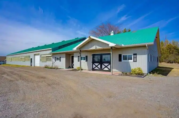 Private Or Boarding Facility. Impressive Main Dutch Master’s Barn With Arena Includes German Fibre Footing. First Barn With 8 Stalls, Hay And Feed Storage.2 Wash Stalls. Several Paddocks.