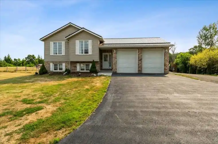 Custom-built in 2005, this bright and spacious 3+1 bedroom home sits on a beautiful 1.5- acre lot. Featuring 2 bathrooms, a large kitchen with a family-sized breakfast area, a sun filled living/dining space with hardwood floors. The cozy family room is equipped with pot lights and overlooks the peaceful backyard, with a walkout to the patio. Generous-sized bedrooms and large 4 pc. bathroom completes the main floor. Fully finished lower level includes above grade windows throughout, a huge rec room, two lower-level bedrooms have been converted into one but can easily be returned to their original layout and a beautiful 3pc. bathroom with glass walk-in shower. Comfort is ensured with separate heat / air conditioning pumps for both the house and garage. Additional features include a fully insulated 24′ x 24′ double car garage with 10′ ceilings and 200-amp panel. A 12′ x 16′ shed with a roll-up door and L-shaped deck. Generlink power backup system, fully fenced backyard, steel roof (2021), professionally maintained ductwork, an owned Culligan water softener, tranquil pond with goldfish, patio, firepit and parking for up to 12 vehicles. Bonus location just minutes from town and the Germans Landing boat launch.